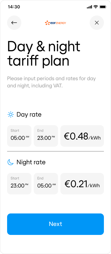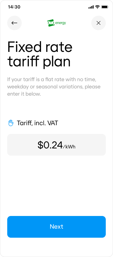This page enables the customer to enter their tariff when they are on a fixed (flat) rate.