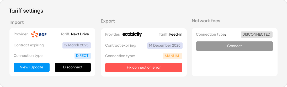 2For each Location with a Flatpeak Location ID, implement a status snippet similar to the illustration above. Refer to Tariff settings > View or update for details.